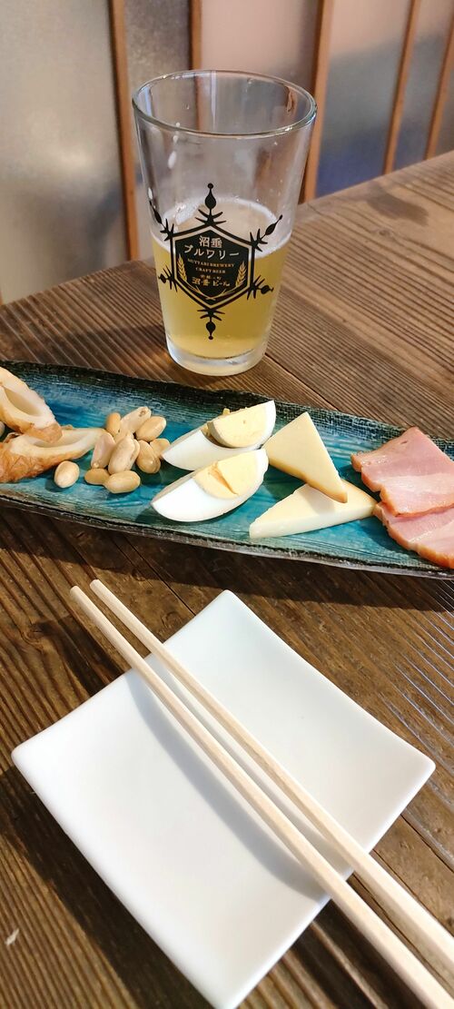 「恋すてふ」や「新潟オールドデイズ」のほか、コシヒカリや佐渡番茶、ル・レクチエを使ったものなど個性的なクラフトビールがそろう。種類によるが、グラスの生ビールで600〜700円台が中心。肴は沼垂らしい「発酵もの」が多い。スモーク(くん製)のセットやソーセージ、シューマイなどがある。
