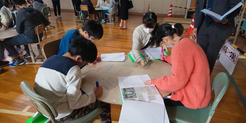 5年生の社会科「水産業のさかんな地域」(授業者:小出春香教諭)では、サンマの水揚げ量の減少に問題意識をもった子どもたちが新聞記事からその原因を把握し、仲間と交流・検討して日本の水産業の課題を理解していきました。