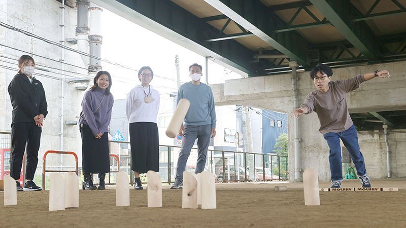 ダーツやボウリング、カーリングを組み合わせたように見えるこの競技は、北欧フィンランド発祥の新スポーツ「モルック」だ。