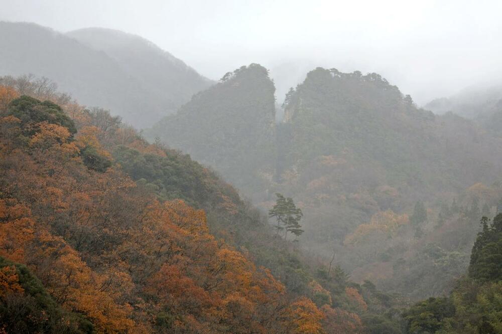 雲でかすむ、佐渡金山のシンボル「道遊の割戸」。世界文化遺産登録に向け、異例の道のりをたどってきた=佐渡市下相川