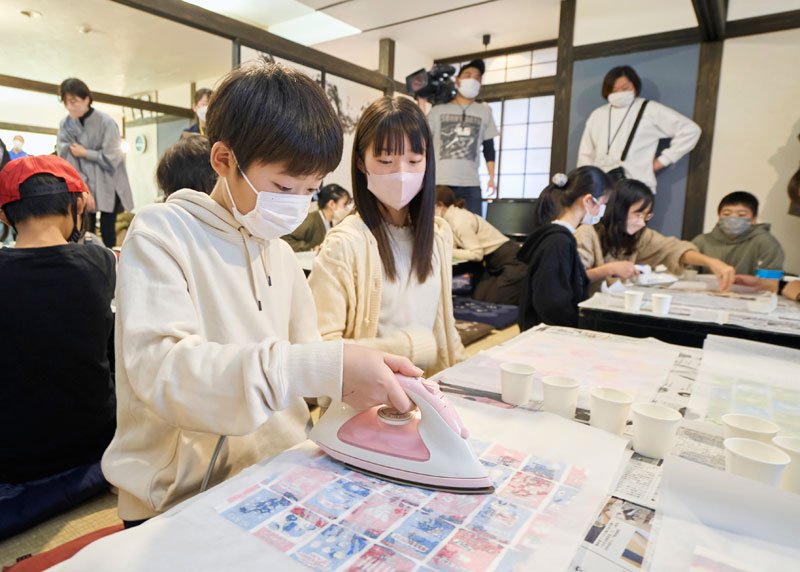 続くワークショップでは、ミツバチの巣から取れる蜜ろうを布に染み込ませて食品ラップ代わりに食材を包む「みつろうラップ」作りに挑戦。野菜を包んだり、おやつ用のお皿などに利用できたりと、水洗いして繰り返し使えるエコアイテム。好きな柄の布を選び、アイロンを使って蜜ろうを布に染み込ませる作業に熱中し、それぞれがお気に入りを作り上げていました。