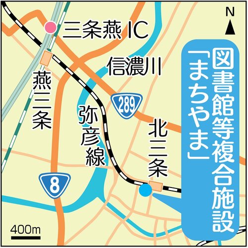<三条市図書館等複合施設「まちやま」>