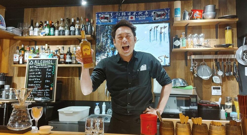 「トライアングル」を経営する沼田基さん。バーの名物はテキーラ