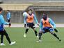 練習では、ピッチのサイズを変えながら何度も1対1が繰り返された。3対2、2対1も、松橋監督は人数が少ない守備側に簡単に突破を許さず、ボールを奪うことも求めた。