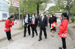 「ライブコマース」収録で県産米をPRする花角英世知事(中央)=シンガポール