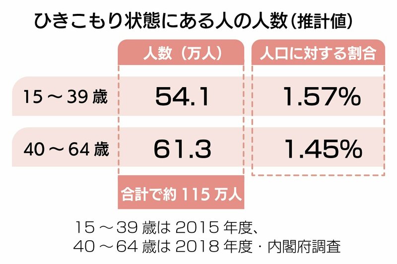 115万人-。全国にいる15〜64歳のひきこもり状態の人数とされる。ただ、これは内閣府が2015年と18年に行った抽出調査による推計値だ。実数はどうなのか。東京都江戸川区は21、22年に、18万世帯を対象にした大規模な調査を行った。