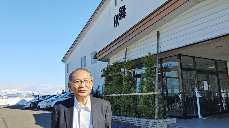 緑川酒造の前に立つ代表取締役社長、大平俊治さん=魚沼市青島