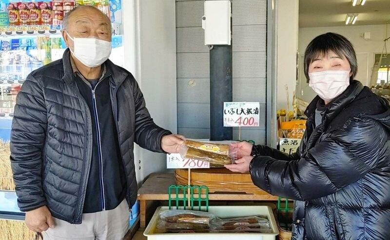 魚沼市の「道の駅ゆのたに」の敷地内にある「いなか家」で購入した(400円)。星安信さん(70)、京子さん(65)夫妻が野菜や自家製の漬物などを販売している。