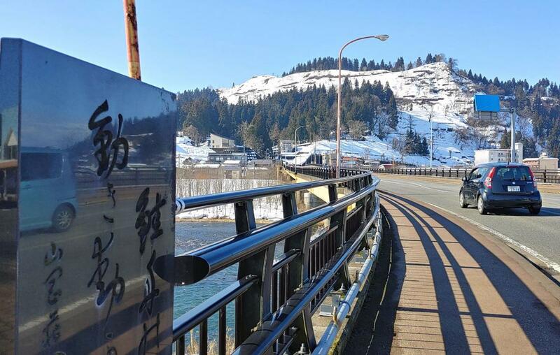 今回、無事に見ることができたのは、山岡の句が刻まれた小出橋の親柱(魚沼市本町1)。「鮭舟の動き動かぬ師走かな」。魚野川のサケ漁の情景を詠んだものだ。