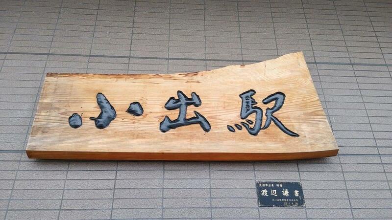 魚沼市(旧小出町)出身の俳優、渡辺謙さんが揮毫したJR小出駅の駅名額