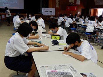 新潟市立西川中学校(佐藤靖子校長)で7月16日、NIE出前授業(1年生88人)が行われた。講師は読売新聞社の富田智晃支局長が務めた。 生徒たちは新聞記者の仕事内容や記事を書くコツ、見出しの重要性を知った。また、グループで話し合いながら、実際の記事に見出しを付けることに挑戦した。 担当の竹田志保子教諭は、生徒が少しでも新聞に関心をもち、夏休みの新聞記事感想文コンクールの応募につなげたいと語った。