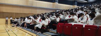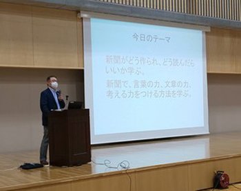 県NIE実践研究委嘱校の新潟第一高等学校(藤澤健一校長)で、NIE出前授業(1年生380人)が、7月21日に行われた。講師は、朝日新聞社の桑山敏成新潟総局長が務めた。 生徒はこの日の朝刊をひろげて、新聞がどう作られ、どう読んだらいいか。新聞でことばの力、文章を読む力、考える方法等を学んだ。 講師は、情報を主体的にとらえ、厳しい社会を生き抜く武器として新聞を活用してほしいと結んだ。