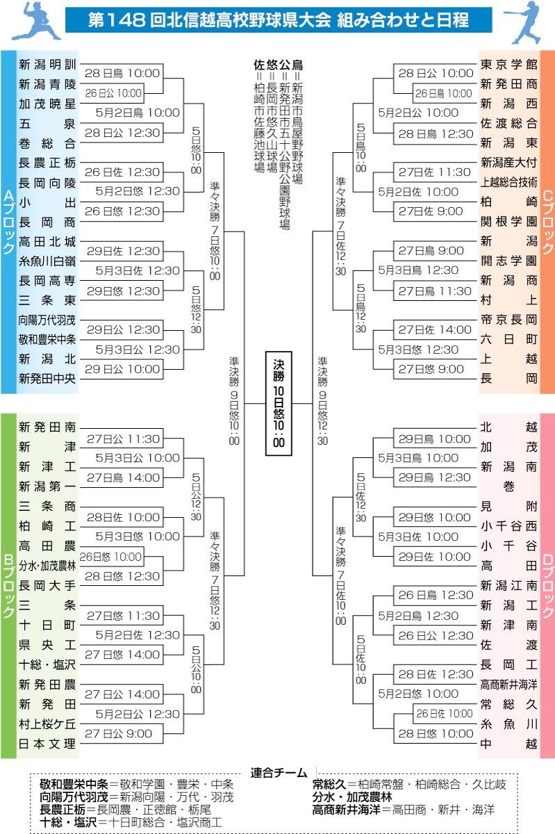 第148回北信越地区高校野球新潟県大会(新潟県高野連、新潟日報社主催)の組み合わせ抽選会が4月20日、新潟市内で行われました。