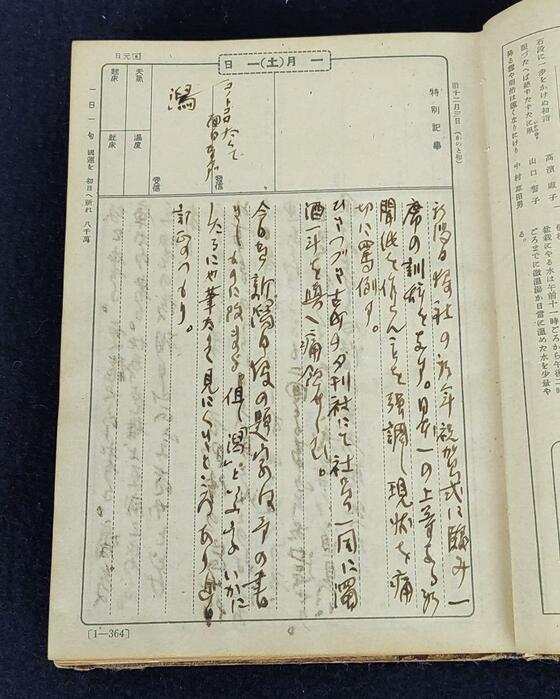 1949(昭和24)年1月1日の會津八一の日記=新潟市會津八一記念館所蔵