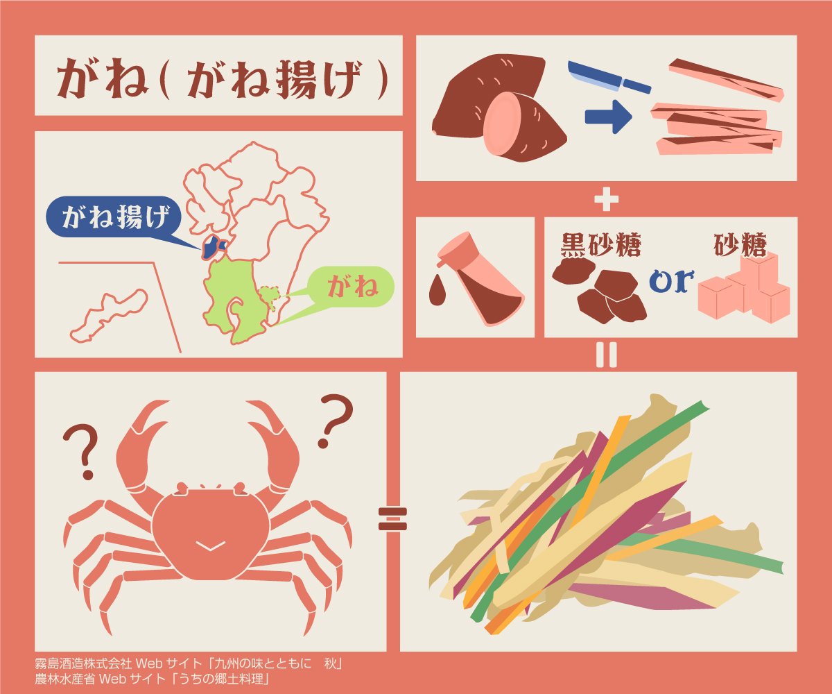 「がね」と呼ばれる家庭料理だ。農林水産省のウェブサイト「うちの郷土料理」によると、鹿児島県、宮崎県、熊本県の郷土料理として紹介されている。