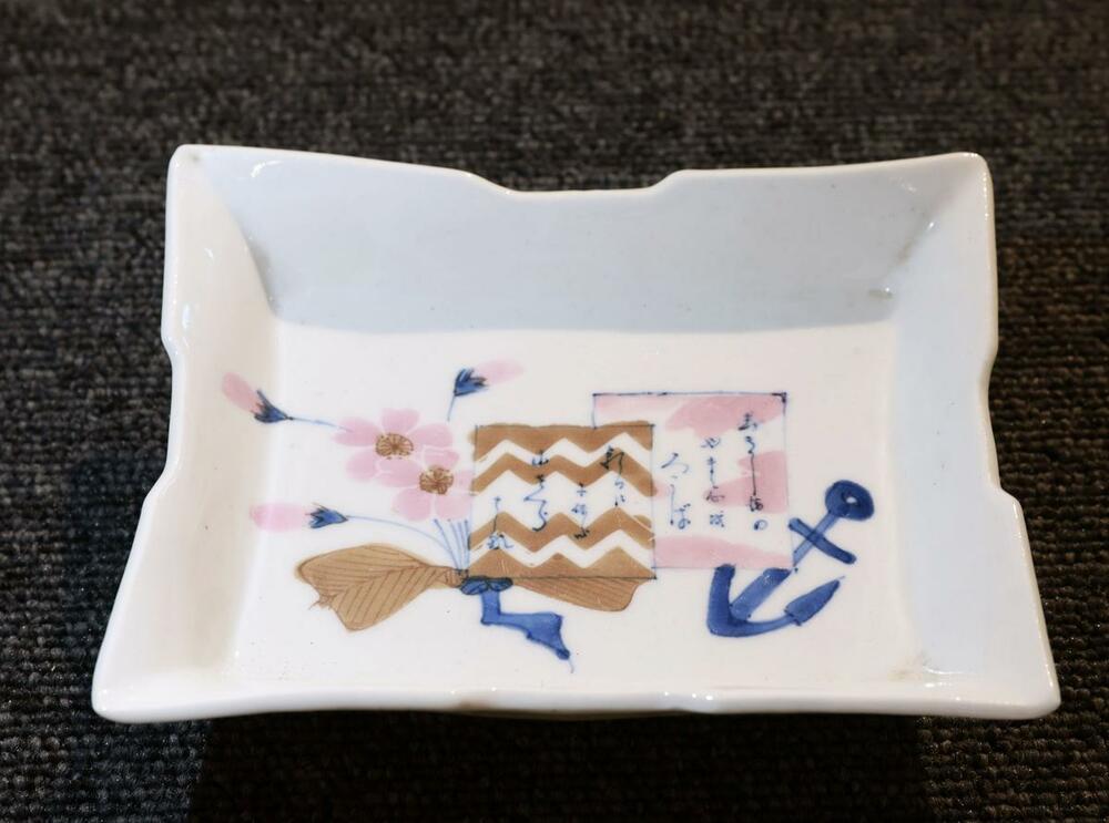 最初はただのお皿に見えた。よく見ると、和歌が描かれている。