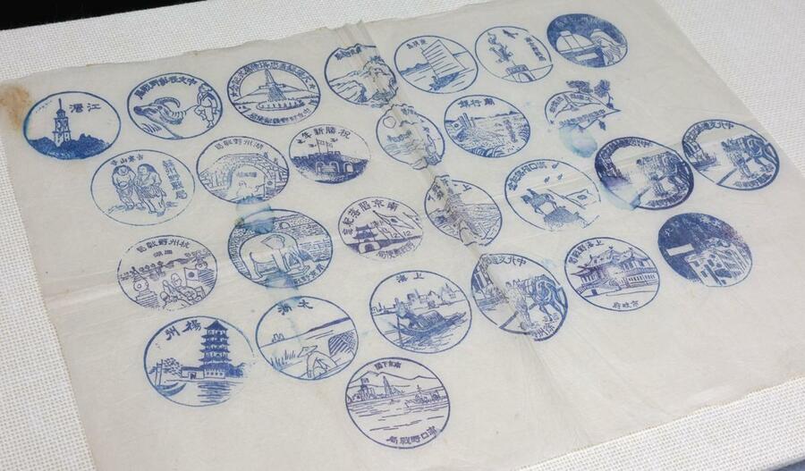 橋本博文名誉教授によると、軍部がプロパガンダの一環として戦勝記念にスタンプを制作した。命令を受けた郵便局やデパート、新聞社などがスタンプを提供したという。