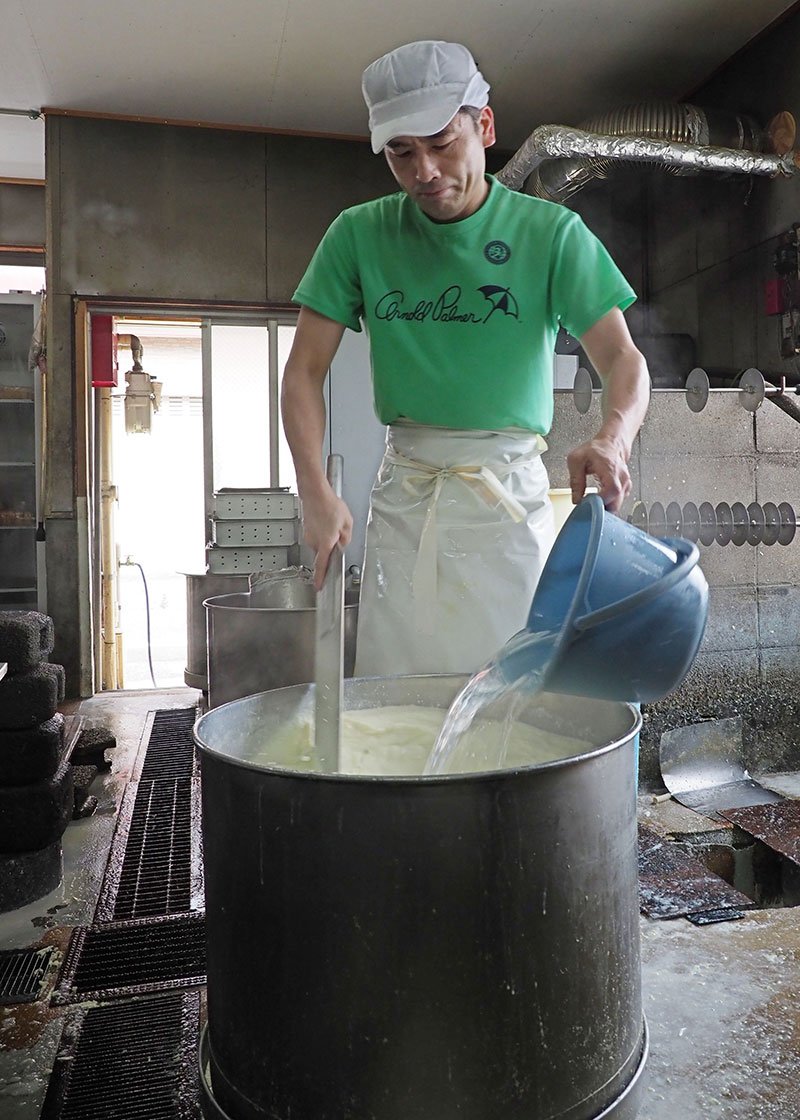 油揚げの原料は大豆。大豆から豆乳を取り出し、にがりで固めて生地(豆腐)を作って、それを菜種油などで揚げたものが油揚げだ。栃尾の油揚げがおいしいのは、そもそも豆乳がおいしいからではないか。