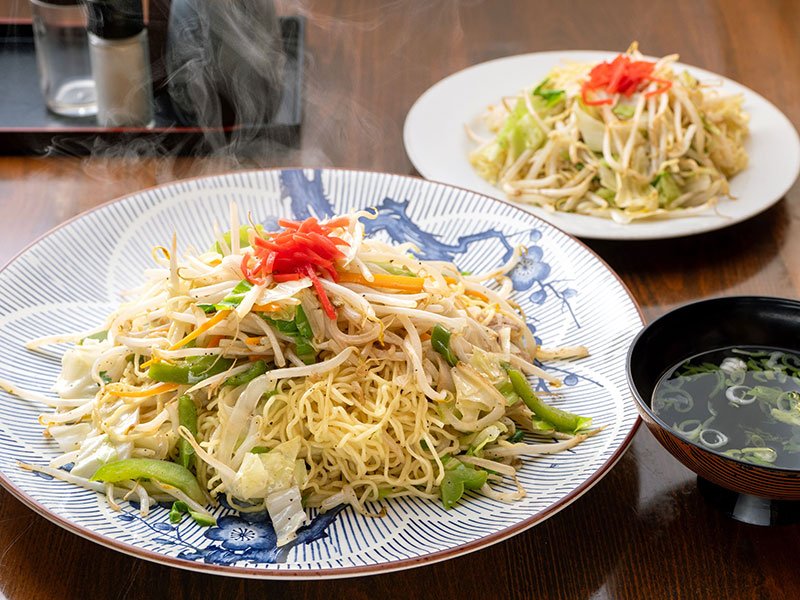 10年ほど前に訪れた店の味を思い出し、久しぶりにのれんをくぐってみたのは「麺工房 なべなか」(村上市安良町)。製麺所が営む飲食店だ。ラーメンや焼きそばを中心に麺料理がメニューを彩る。店の名物は焼きそば。注文した「野菜たっぷりやきそば」はよく知る茶色ではなく、白い。