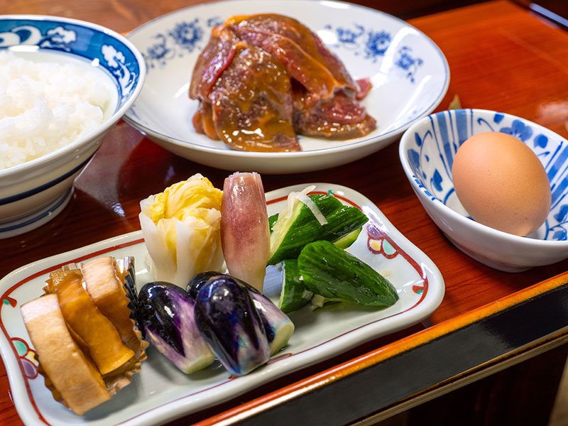 早いときは朝5時から仕込むという羊肉は、特製みそダレのおかげで特有の臭みが抑えられ、厚みがあるのに柔らかい。やや濃いめの味付けは、卵に潜らせることでまろやかで芳醇(ほうじゅん)に。地野菜の自家製漬物は、これぞ箸休めといった存在。注文を忘れてほしくない一品だ。