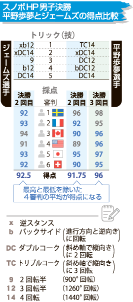平野歩夢選手の評価は採点する6人の審判の中で割れました。