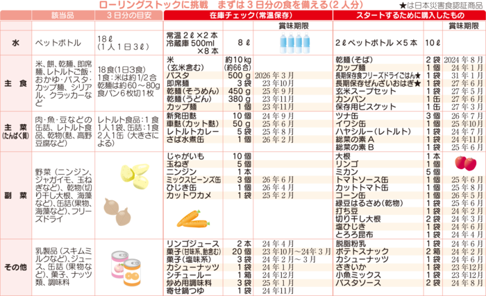 今後、備蓄した食材をどう使い、買い足ししていけるかが重要になる。賞味期限のチェックと回し方も試行錯誤しながら、わが家流を探り、継続できるコツをつかんでいきたい。