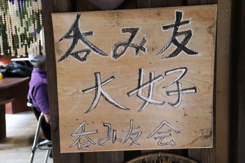 小屋の入口にある「呑み友会」と書かれた看板