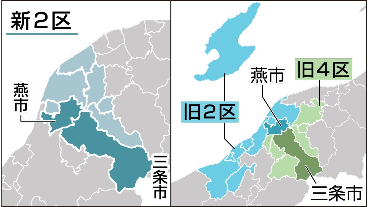 ともに金属加工の集積地で知られる三条市と燕市。市境を接しながらも衆院小選挙区の旧新潟2区と旧新潟4区に分かれていたが、新たな区割りで新・新潟2区新潟市西区、新潟市南区、新潟市西蒲区、三条市、燕市、加茂市、田上町、弥彦村。として一つになった。