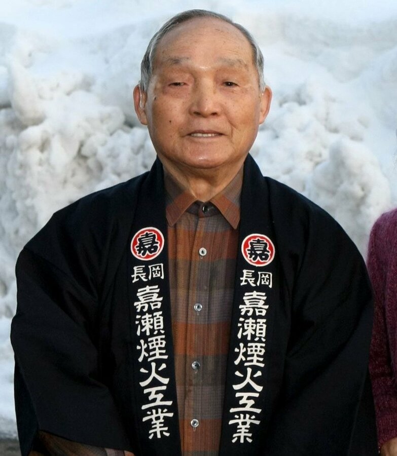 1922年生まれ。36年に父・誠喜さんの営む嘉瀬煙火工業に入り、3代目として花火師の道に進んだ。43年に出征し、シベリア抑留から帰還後の51年、長岡まつり大花火大会で戦後初の正三尺玉を打ち上げ、復活させた。83年には世界初の正三尺五寸玉を打ち上げた。