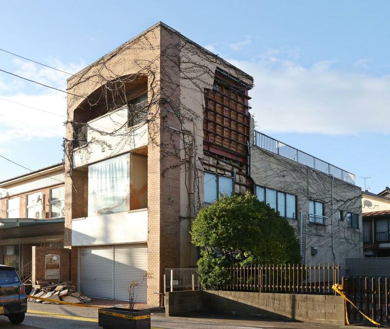 糸魚川市の被害状況 外壁が大きく崩れていた建物=1月2日、糸魚川市大町2