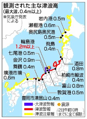マグニチュード(M)7・6を観測した1月1日の能登半島地震では、北海道から九州にかけての広範囲で津波が観測された。新潟県内でも複数の場所で津波が観測された。日本海側では過去にも津波被害を伴う地震が発生している。沿岸部に到達するまでの時間が短いのが日本海側の津波の特徴だが、太平洋側に比べてデータが少なく...