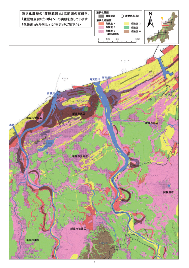 ※地図は北陸地方整備局、地盤工学会北陸支部が作成し2012年に公表した「新潟県内液状化しやすさマップ」のものです