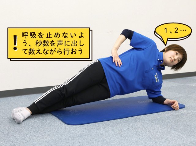呼吸を止めないよう、秒数を声に出して数えながら...