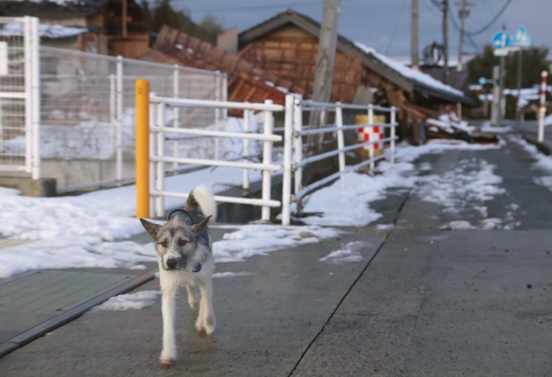 がれきの山が目立つ街の中で、取材班の後をしばらく付いてくる犬がいました。さまよい、雪に顔を突っ込んで餌を探す様子を見て、近くに飼い主がいることを願いました。