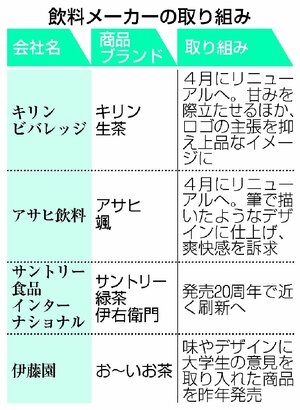 経済 飲みたいのはど~れ?ペットボトル入り緑茶が「ホット」な争い!生茶、颯、伊右衛門、お〜いお茶…味やパッケージ刷新、各社が顧客拡大に躍起 2024/2/3 21:30 (最終更新: 2024/3/29 15:44) 飲料メーカー各社が、ペットボトル入り緑茶のシェア争いでしのぎを削っている。健康意識の高まりでさらなる市場拡大が見込まれるため、顧客獲得に躍起だ。物価高を背景に、割安なプライベートブランドも人気が高... 残り434文字(全文:533文字) ここから先を読むには 続きを読む(会員登録する) 続きを読む(ログイン) 新潟日報朝刊を購読していますか? はい いいえ トップページで最新情報を見る 関連ニュース AI事業で故郷に貢献したい…現役大学生が上越市にベンチャー企... 1/23 トリミングサロン兼ペットホテルで愛犬とくつろぎタイム♪小型犬... 1/23 ロピアのFC展開は?激戦のホームセンター業界の生き残り戦略は... 1/23 人気商品「和からしマスタード」風味のポテトチップス発売!鈴木... 1/23 氷川きよしさん×菊水酒造、新デザイン生原酒27日発売 新曲「... 1/23 長岡花火の経済効果は約110億円!満足度97%の一方、課題も... 1/22 【動画あり】「AIてっと君」とお話ししたよ!新潟日報生成AI... 1/22 小国和紙で“まるで風呂敷”なPCケース♪長岡造形大生が協力、... 1/22 燕振興工業(燕市)壁紙制作事業に参入 道路標識、屋外看板…既... 1/22 お土産に「佐渡牛乳ガレット」いかが?佐渡乳業の牛乳使用、パッ... 1/22 異業種連携で新会社、五泉市でネット事業 NCT・越後天然ガス... 1/22 トランプ関税影響これからか…価格転嫁は「横にらみ」、AIRM... 1/22