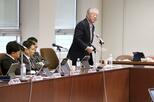 地震や大雪時に柏崎刈羽原発で事故が起きた際の避難方法の実効性について質問が出た市町村の実務担当者会議=1月6日、長岡市