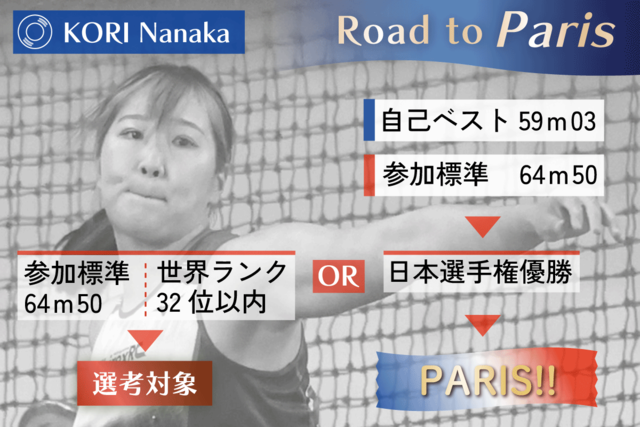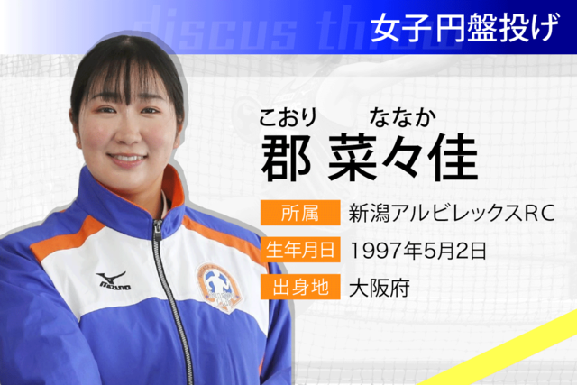 女子円盤投げの郡菜々佳(新潟アルビレックスRC)は、参加標準記録が64メートル50。自身が持つ日本記録を上回る必要がある。
