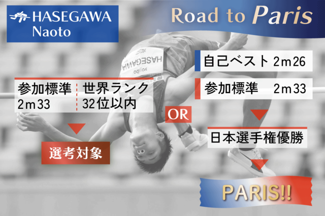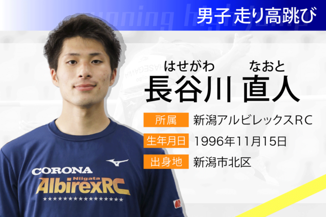 男子走り高跳びの長谷川直人(新潟市北区出身・新潟アルビレックスRC)は、2023年に初めての世界選手権出場を果たした。自己ベストは2メートル26で、まずはオリンピックの参加標準記録の2メートル33を目指す。