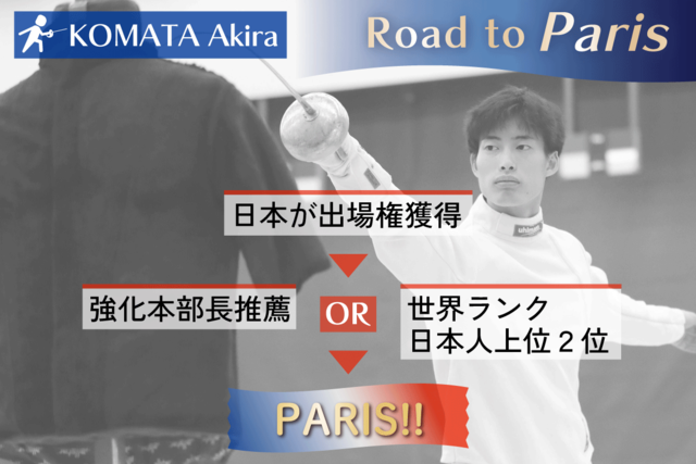 フェンシングは団体、個人ともに4月までの世界ランクが出場を左右する。杭州アジア大会で男子エペ団体の優勝に貢献した古俣聖(あきら)=新潟市西区出身・本間組=は、国際大会で勝利を積み重ねられるかが鍵となる。女子もサーブルの小林かなえ(聖籠町出身・三重クラブ)が初出場を狙う。団体は4月1日時点の世界ランクが4位以内か、アジア最上位になると日本は出場権を獲得できる。出場枠を獲得した上で、メンバーの4人に食い込む必要がある。