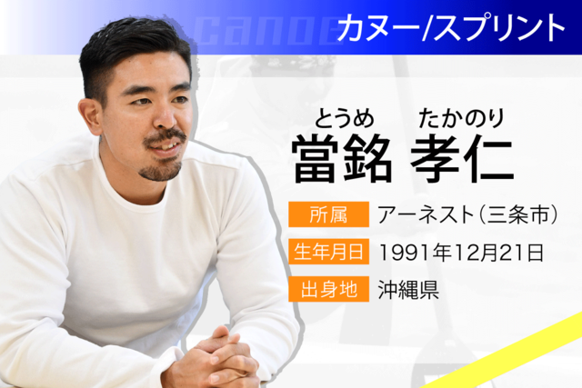 東京五輪に続く出場を狙うカヌースプリントの當銘孝仁(とうめ・たかのり)=アーネスト・三条市=は、3月の国内選考で優勝すると、4月のアジア大陸予選の出場権を獲得する。4月のアジア大陸予選に出場し、上位2カ国の代表枠獲得を狙う。さらに選考会で優勝する必要がある。