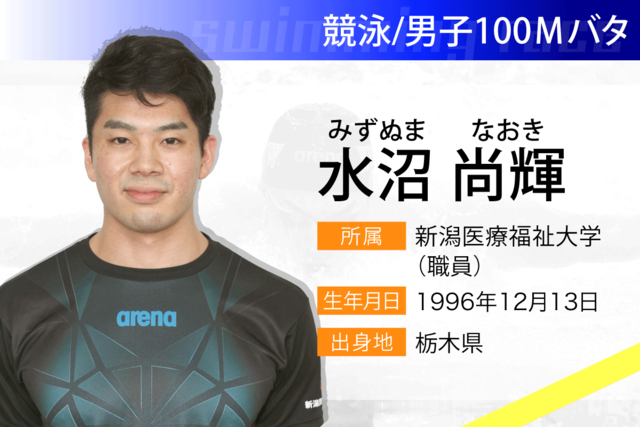 競泳の個人種目は3月に開催される代表選考会の決勝で決まる。五輪本番で決勝進出が見込める「派遣標準記録」を突破して2位以内に入れば代表となる。男子100メートルバタフライの日本記録保持者、水沼尚輝(新潟医療福祉大職員)は、3月の選考会で条件を満たせば東京に続く2大会連続の五輪出場となる。不振が続いていたが復調傾向にあり、期待が高まる。