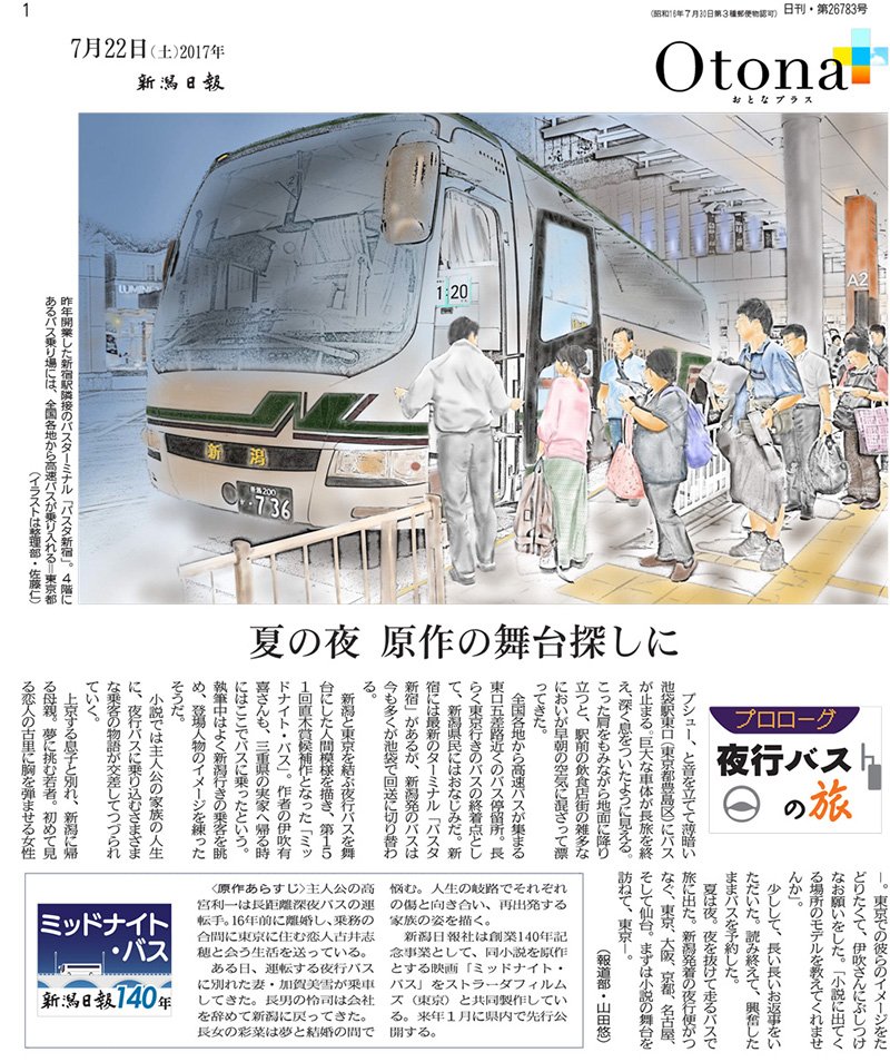 おとなプラスアーカイブ・2017年7月22日掲載 [新潟日報140年 ミッドナイト・バス 夜行バスの旅 プロローグ]夏の夜 原作の舞台探しに 2024/2/29 12:00 おとなプラスは2月29日付(朝刊と同時配達は3月1日付)をもって休刊いたします。2016年11月の創刊から7年余りにわたって日替わりで掲載してきたフロント特集の中から、話題を集めたいくつかの特集をご紹介します。 おとなプラスアーカイブ・2017年7月22日掲載 [新潟日報140年 ミッドナイト・バス 夜行バスの旅 プロローグ] 夏の夜 原作の舞台探しに ... トップページで最新情報を見る 関連ニュース 山頂に神社、小学校の屋上…各地に点在する「三角点」って?形は... 9/30 「アクシアル」「コメリ」などプライベートブランド開発の裏側お... 9/23 柏崎刈羽原発巡る県民投票、今も望む声やまず…首長らとの「意思... 9/16 【動画あり】猫と人がより幸せに暮らすには?保護猫と新たな飼い... 9/2 横綱大の里らを輩出、海洋高校相撲部はなぜ強い?厳しい基礎練習... 8/26 “最後の職人”亡き後も…紡がれ続ける「小須戸縞」 生産技術を... 8/19 「こども食堂」新潟県内で産声上げ10年、現状を白書にまとめ…... 8/12 回収した生ごみを発酵→電気と肥料に!循環社会の実現に挑む長岡... 7/29 身近に広がる「お米のプラスチック」♪ごみ袋や子どものおもちゃ... 7/22 減りゆく長岡空襲の生き証人…戦災資料館に並ぶ遺影を見て、子ど... 7/15 アツいぞ新潟の女子野球!高校や大学で続々創部、初の県人主将も... 6/24 佐渡島に“キングギドラ”がいる⁉新潟大学が大自然の神秘に挑む... 6/17 特集・連載 [新潟県の地域別感染症情報]新型コロナウイルスが増加傾向に ... 10/9 【高校入試・新潟】最新情報&お役立ち情報まとめ 倍率・過去問も 7/28 漫画で知る「うつ病」とは? 若手社員が休職→通院→復職するま... 6/13 [紅葉スポット×花スポット]新潟県内の紅葉や花畑、映える名所... 5/29 【猫動画あり・新作追加】新潟県内「猫のいる店」♡モフモフに触... 8/27 [WEリーグ]今からでも間に合う!アルビレックス新潟レディー... 8/14 【機動戦士ガンダムジークアクス】鶴巻和哉監督(五泉市出身)が... 8/4 【赤塚不二夫さん生誕90周年】人生はギャグなのだ ①ボクの原... 4/2 Otona+ 山頂に神社、小学校の屋上…各地に点在する「三角点」って?形は... 9/30 「アクシアル」「コメリ」などプライベートブランド開発の裏側お... 9/23 柏崎刈羽原発巡る県民投票、今も望む声やまず…首長らとの「意思... 9/16 【動画あり】猫と人がより幸せに暮らすには?保護猫と新たな飼い... 9/2 横綱大の里らを輩出、海洋高校相撲部はなぜ強い?厳しい基礎練習... 8/26