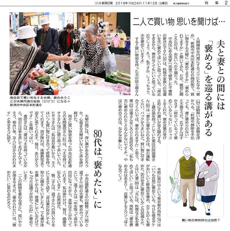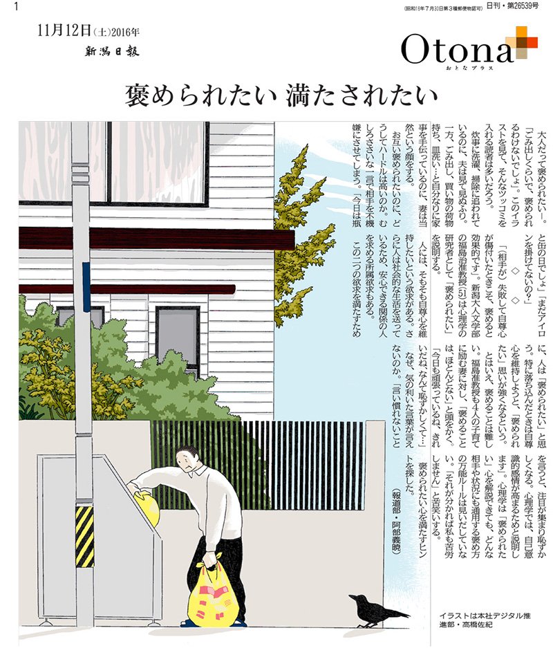 おとなプラスアーカイブ・2016年11月12日掲載 褒められたい満たされたい 2024/2/28 12:00 おとなプラスは2月29日付(朝刊と同時配達は3月1日付)をもって休刊いたします。2016年11月の創刊から7年余りにわたって日替わりで掲載してきたフロント特集の中から、話題を集めたいくつかの特集をご紹介します。 おとなプラスアーカイブ・2016年11月12日掲載 褒められたい満たされたい ... トップページで最新情報を見る 関連ニュース 山頂に神社、小学校の屋上…各地に点在する「三角点」って?形は... 9/30 「アクシアル」「コメリ」などプライベートブランド開発の裏側お... 9/23 柏崎刈羽原発巡る県民投票、今も望む声やまず…首長らとの「意思... 9/16 【動画あり】猫と人がより幸せに暮らすには?保護猫と新たな飼い... 9/2 横綱大の里らを輩出、海洋高校相撲部はなぜ強い?厳しい基礎練習... 8/26 “最後の職人”亡き後も…紡がれ続ける「小須戸縞」 生産技術を... 8/19 「こども食堂」新潟県内で産声上げ10年、現状を白書にまとめ…... 8/12 回収した生ごみを発酵→電気と肥料に!循環社会の実現に挑む長岡... 7/29 身近に広がる「お米のプラスチック」♪ごみ袋や子どものおもちゃ... 7/22 減りゆく長岡空襲の生き証人…戦災資料館に並ぶ遺影を見て、子ど... 7/15 アツいぞ新潟の女子野球!高校や大学で続々創部、初の県人主将も... 6/24 佐渡島に“キングギドラ”がいる⁉新潟大学が大自然の神秘に挑む... 6/17 特集・連載 [新潟県の地域別感染症情報]新型コロナウイルスが増加傾向に ... 10/9 【高校入試・新潟】最新情報&お役立ち情報まとめ 倍率・過去問も 7/28 漫画で知る「うつ病」とは? 若手社員が休職→通院→復職するま... 6/13 [紅葉スポット×花スポット]新潟県内の紅葉や花畑、映える名所... 5/29 【猫動画あり・新作追加】新潟県内「猫のいる店」♡モフモフに触... 8/27 [WEリーグ]今からでも間に合う!アルビレックス新潟レディー... 8/14 【機動戦士ガンダムジークアクス】鶴巻和哉監督(五泉市出身)が... 8/4 【赤塚不二夫さん生誕90周年】人生はギャグなのだ ①ボクの原... 4/2 Otona+ 山頂に神社、小学校の屋上…各地に点在する「三角点」って?形は... 9/30 「アクシアル」「コメリ」などプライベートブランド開発の裏側お... 9/23 柏崎刈羽原発巡る県民投票、今も望む声やまず…首長らとの「意思... 9/16 【動画あり】猫と人がより幸せに暮らすには?保護猫と新たな飼い... 9/2 横綱大の里らを輩出、海洋高校相撲部はなぜ強い?厳しい基礎練習... 8/26