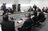 柏崎市議会の調査特別委員会に請願の趣旨説明をする柏崎商工会議所の西川正男会頭=2月27日、柏崎市議会