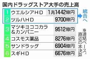 イオンは2月28日、子会社でドラッグストア最大手のウエルシアホールディングス東証プライム市場上場のドラッグストア運営会社。傘下にウエルシア薬局(東京都)やコクミン(大阪市)、シミズ薬品(京都市)などを置く。2014年にイオンの子会社となった。と同業2位のツルハホールディングス1929年に創業した北海道発祥のドラッグストア大手。95年にジャスコ(現イオン)と資本業務提携した。全国で約2600店舗を展開している。傘下にツルハ(札幌市)、杏林堂薬局(浜松市)など。の経営統合協議に入ると発表した。ツルハがウエルシアを子会社化し、イオンの傘下に入る。売上高が2兆円、全国5千店規模の巨大チェーンが誕生する。競争が激化する中...