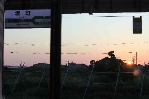 〈日没と 列車の時刻 どんピシャリ〉