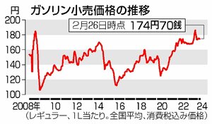 経済 ガソリン価格7週ぶり値上がり、全国平均174円70銭 新潟県は横ばいの170円90銭 2024/3/2 9:30 経済産業省が2月28日発表した26日時点のレギュラーガソリン1リットル当たりの全国平均小売価格は、前週調査に比べ40銭高い174円70銭だった。7週ぶりに値上がりした。円安や中東情勢の緊迫化などを受け、原油... 残り392文字(全文:496文字) ここから先を読むには 続きを読む(会員登録する) 続きを読む(ログイン) 新潟日報朝刊を購読していますか? はい いいえ トップページで最新情報を見る 関連ニュース 国内最大級コメ品評会で栄冠!佐渡市の荒井瑠伽さんと魚沼市の小... 14:00 長岡市寺泊野積の旅館「まつや」が事業停止、業況改善の見通し立たず 12:40 規格外のナシをチューハイシロップに!新潟市中央区・江南区の飲... 11:00 ノーベル賞晩さん会のカトラリー手がける山崎金属工業(燕市)海... 9:45 「ご当地Suica」JR東が開始へ!各地域に根ざしたサービス... 12/14 2025年新規上場は2割減66社、トランプ関税で先行きに不透... 12/14 多様性に富む新潟県産ワインPR!県内10ワイナリーが協会設立... 12/14 創業志す受講生へ助言、柏崎たまご塾10周年交流会 卒業生ら語... 12/14 佐渡市の両津やまきホテル取得の企業が花角英世知事と面会 20... 12/14 10月の県経済「緩やかに持ち直し」維持 設備投資と個人消費は... 12/14 障害者のアートが日本酒のラベルに、上越市などで8銘柄販売 白... 12/14 県内企業でいろいろ学べた!三条市立大生が実習成果報告 「新商... 12/14
