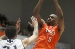 新潟-A千葉 第2クオーター、冨岡大地が3点シュートを決めて22-37=アオーレ長岡