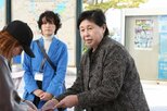 キム・ウンギョンさん(左)の娘チオニちゃんを抱く横田早紀江さん=2014年3月、ウランバートル(有田芳生事務所提供)