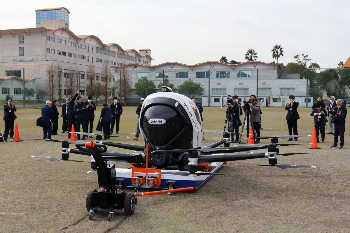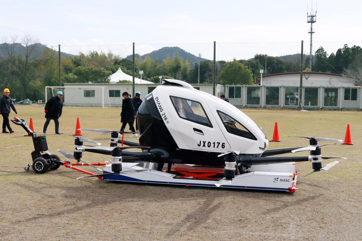 機体は中国製の「EH216」(高さ約1・8メートル、幅約5・6メートル)だ。2人乗りで、垂直に離着陸する。